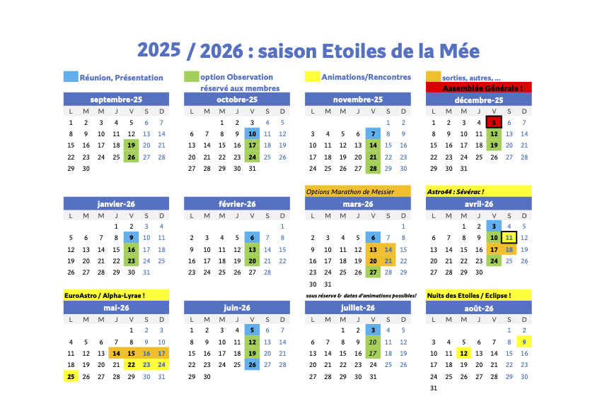 Calendrier de la saison 2025/2026 pour les membres de l’association
